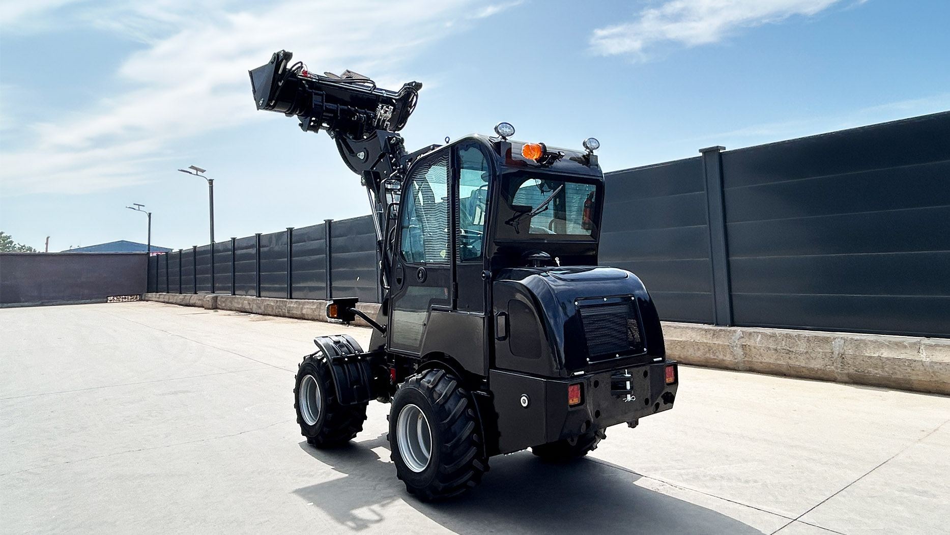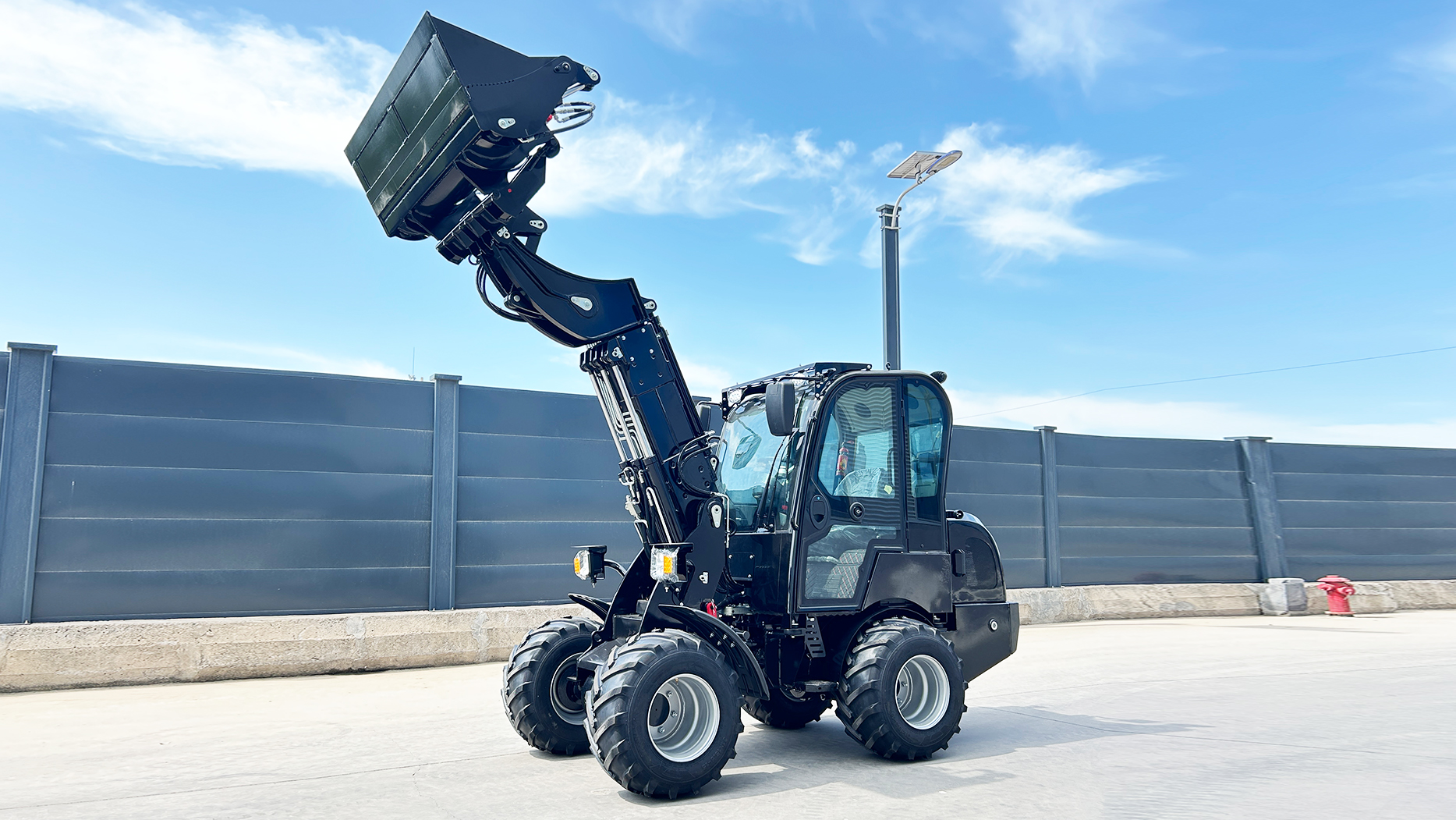 Telescopic Boom: The hydraulically controlled telescopic arm allows the operator to extend the boom forward and upward, achieving a maximum lift height and forward reach significantly greater than conventional small wheel loaders. This is critical for tasks like stacking materials on high shelves, loading high-sided trucks, or reaching over obstacles.