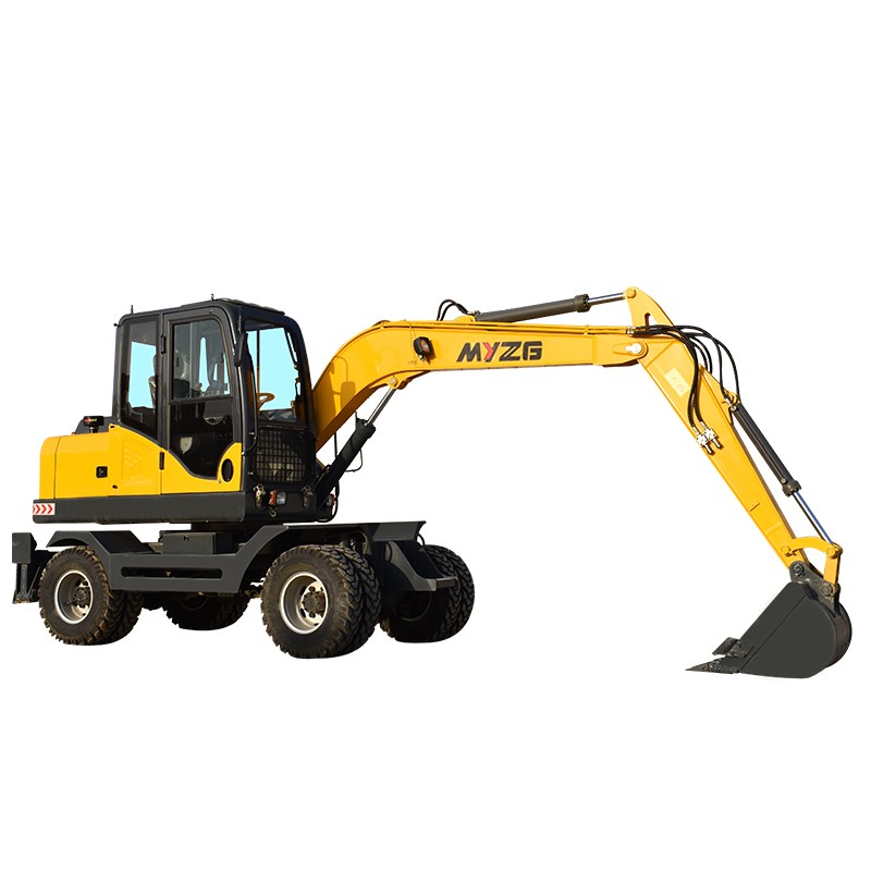 MYZG 75 wheeled hydraulic excavator is powerful, flexible and exquisite enough to cope with a variety of workingconditions. The appearance size of the machine complies with road regulations and transportation requirements. Itplays an important role in the aspects of airport, port, oil field, urban construction, irigation and water conservancy andrapid repair, and brings rich value returns for customers.