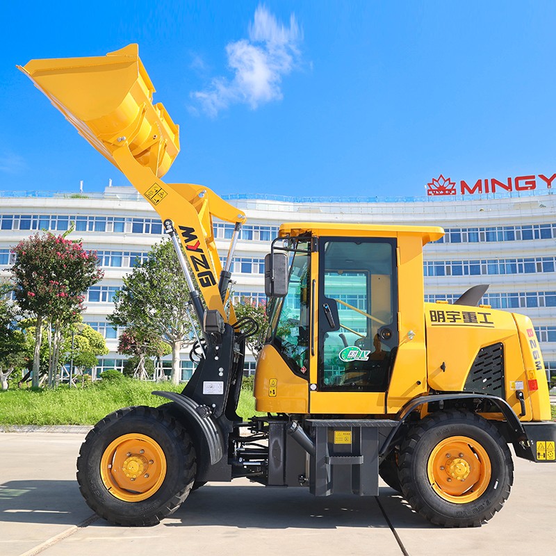 A Carregadeira de Rodas Compacta B26 foi projetada especificamente para ambientes de trabalho estreitos que exigem alta manobrabilidade e excelente capacidade de carga. Com uma capacidade de carga nominal de 900kg e uma capacidade de caçamba de $0.3m^3$, garante o carregamento e descarregamento rápido e eficiente de materiais em canteiros de obras, fazendas ou armazéns. O peso operacional de 2100KG desta máquina está em perfeito equilíbrio com o seu desempenho robusto, apresentando uma estrutura sólida capaz de suportar operações intensivas. É particularmente notável o seu raio mínimo de giro de 3050MM, que permite uma manobra ágil e operações em espaços confinados, melhorando significativamente a produtividade no local de trabalho.