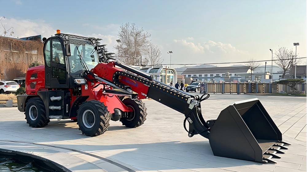 Em contraste, o manipulador telescópico (ou telehandler) é definido por sua robusta lança telescópica articulada—o seu braço extensível. Esta lança pode estender-se não apenas verticalmente, mas também significativamente para a frente e em diversos ângulos. Essa característica de alcance é a chave da versatilidade do telehandler, permitindo-lhe colocar cargas sobre obstáculos, dentro de caminhões de carroceria alta ou em plataformas elevadas a uma distância considerável, sem que a máquina precise estar adjacente ao ponto de descarga. Para operações de alta capacidade ou alcance máximo, muitos telehandlers, incluindo modelos robustos da MYZG, utilizam patolas ou estabilizadores hidráulicos que são acionados para ampliar a base de sustentação, fornecendo uma estabilidade superior à de um sistema de contrapeso simples e tornando-o um equipamento essencial.